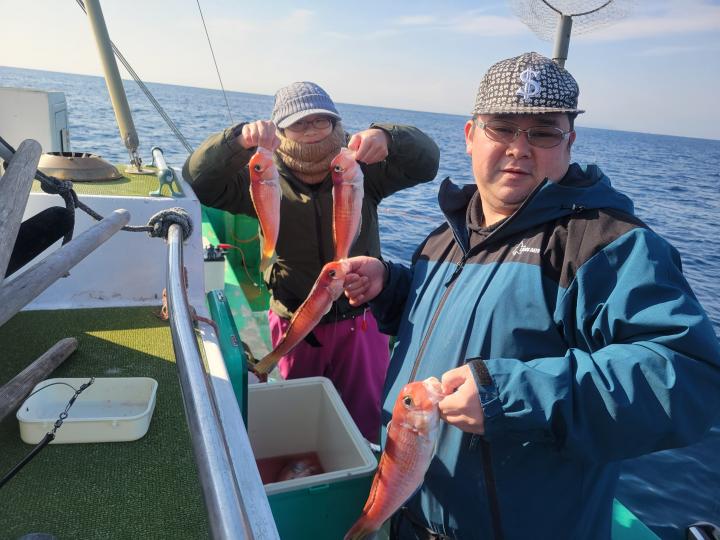 他シロアマダイ、チカメキントキ、イトヨリ、レンコダイ。アマダイはトップ5匹がお二人でした。今日は中盤に潮が流れて、ぽつぽつと顔を出してくれました。流れがない時間帯はむずかしい状況でした。本日はありがとうございました。